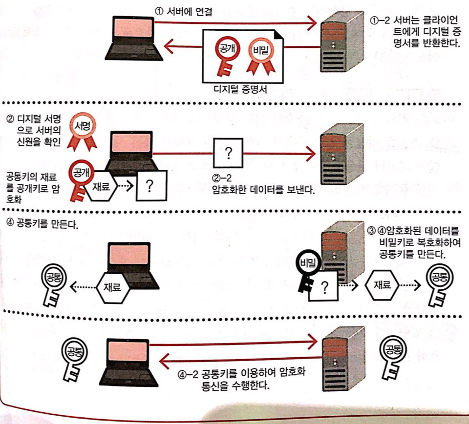 4. 클라이언트와 서버는 공통 키의 재료로부터 공통 키를 만들어 이후에는 그것을 이용하여 암호화 통신을 수행합니다.