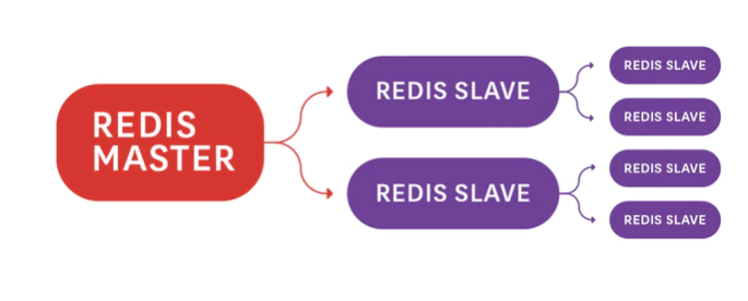 NOTE: 위에 다이어그램에서, 레디스 마스터는 두 개의 슬레이브 커넥션을 가지고 있다. 첫 번째 슬레이브도 각각 2개의 슬레이브를 가지고 있다. 두 번째 슬레이브는 마스터에 직접 연결되지 않습니다.