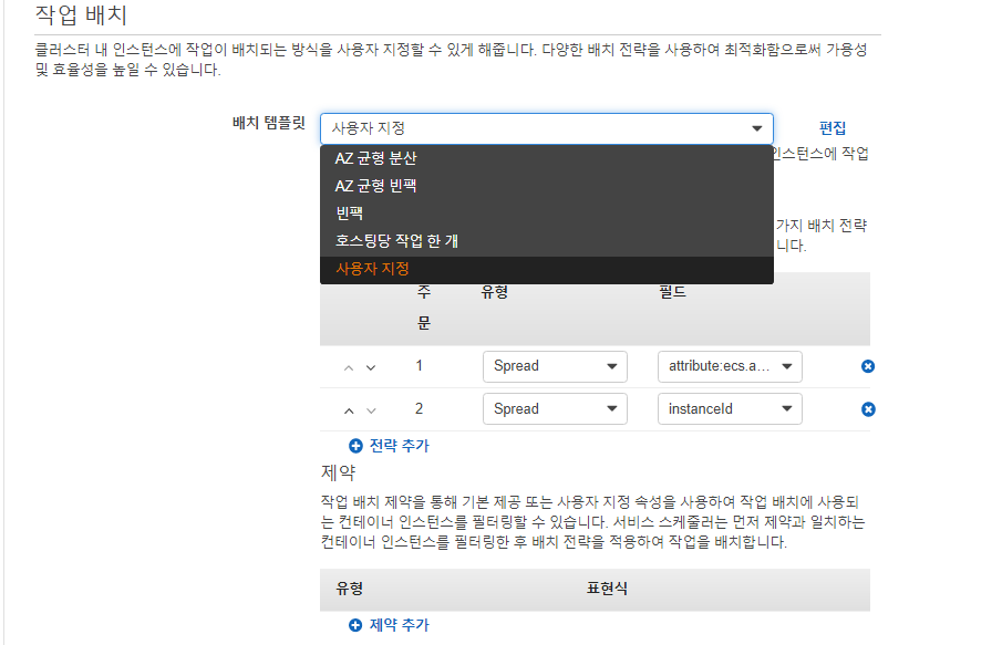 aws 제공하는 작업 배치 방식은 여러개가 존재합니다. 저는 AZ 균형 분산 방식에 대해서만 사용해보았기 때문에 간단한 추가설명만 드리겠습니다.