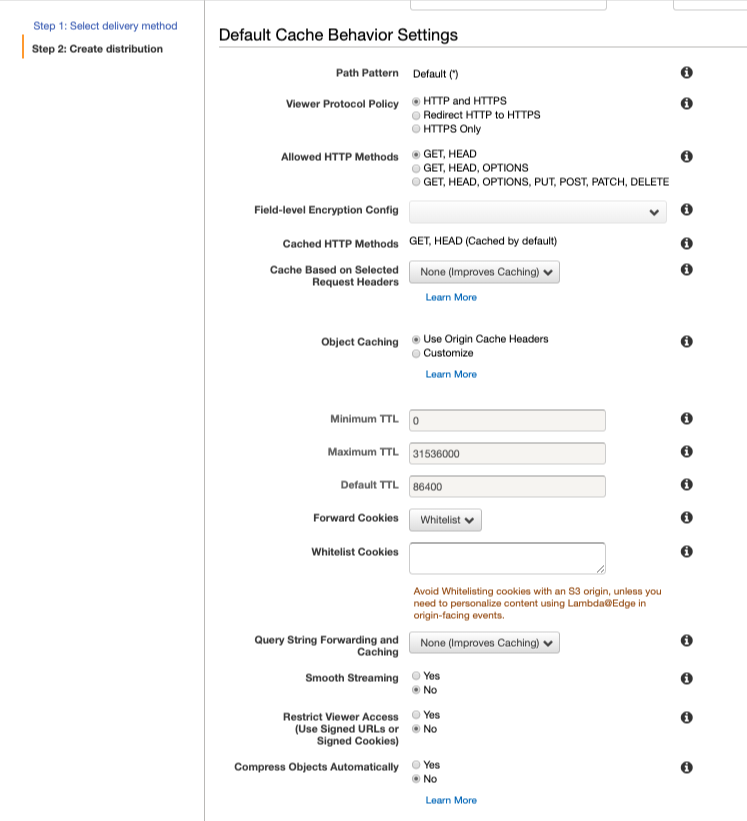4. 캐시 정책 설정(default cache Behavior Settings)